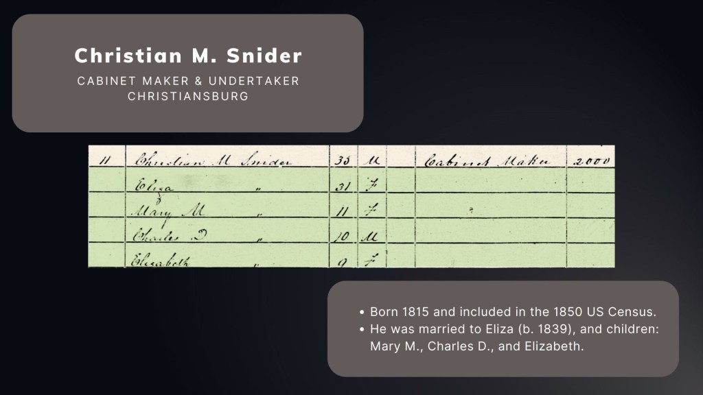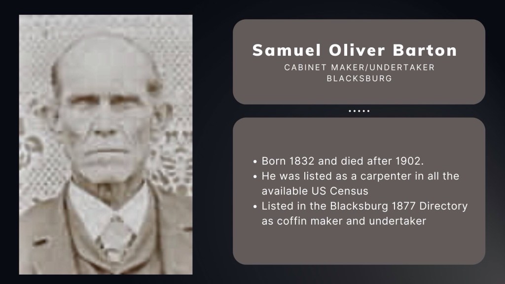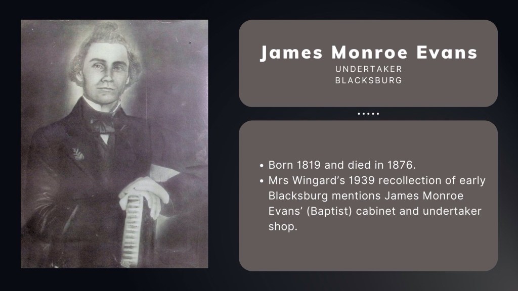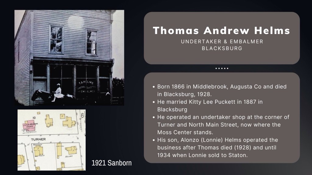 Embalming practices gained acceptance by the 1870s, allowing for elaborate mourning customs. By 1890 in Blacksburg wealthy deceased were embalmed in their home; however, as embalming became affordable, undertakers established dedicated spaces in their shops for preparation, shifting away from home visits.