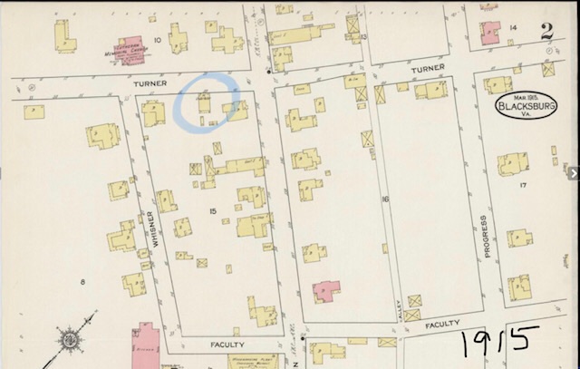 Tom married Kitty Lee Puckett of Pearisburg in 1887 and they built a house on the SW corner of Main and Turner prior to 1915. Their first child arrived in 1889 and the last in 1904: Alonzo W. Helms (Lonnie, 1889-1960), Verner Louis Helms (1891-1917, lost at sea), Lillian Helms (1892-1957), Sally V Helms Timberlake (1894-1969), Samuel T. (1896-1961), Mary Lee Helms Nottingham (1898-1981), Guy N. Helms (1900-1973), John C. Helms (1902-1944), Minerva Helms (1904-1987).