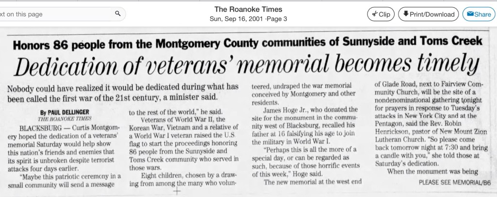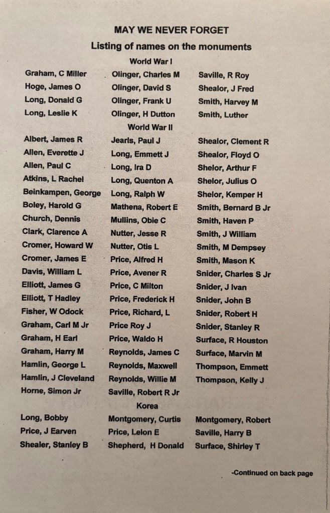 On a sunny afternoon in September, approximately 500 residents and friends of the Sunnyside and Toms Creek communities gathered to dedicate a monument honoring veterans that served in the armed forces during wartime.