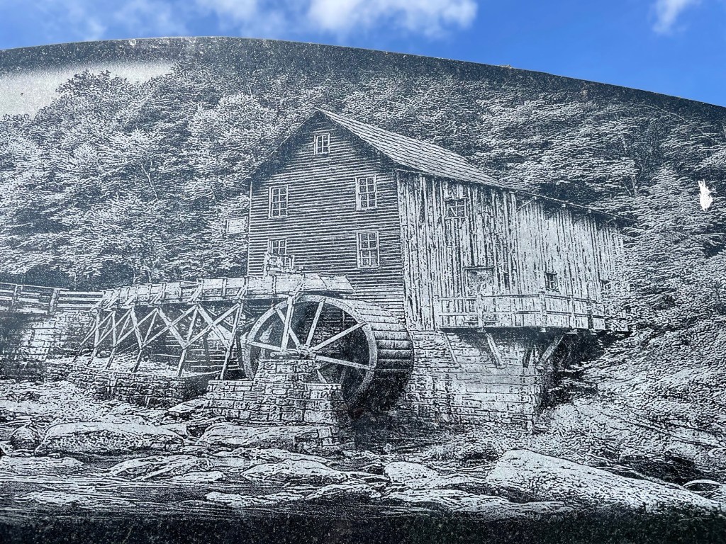 Thanks for reaching out to us. That is a good question as to which mill is depicted on the monument. Perhaps Jimmy Price knows.