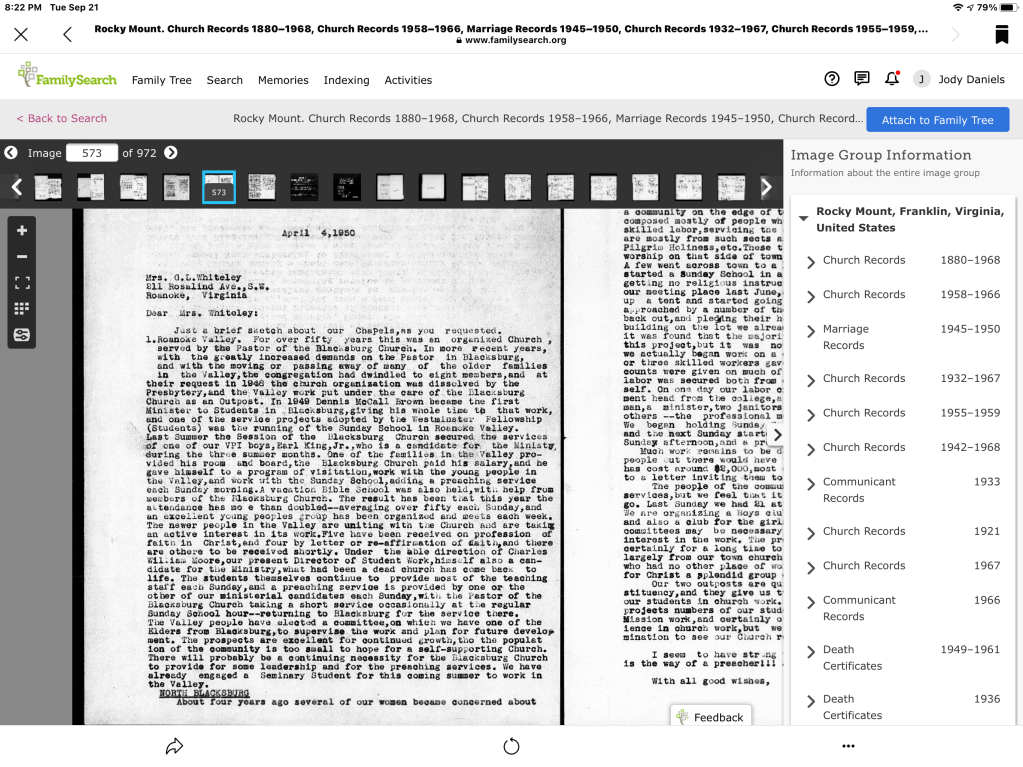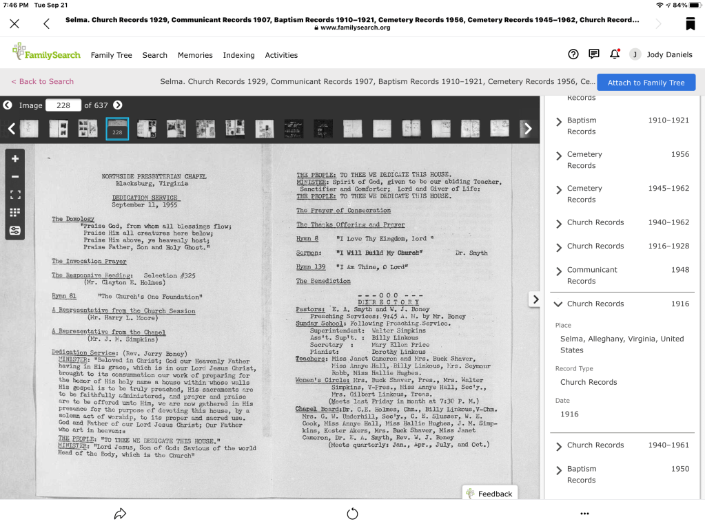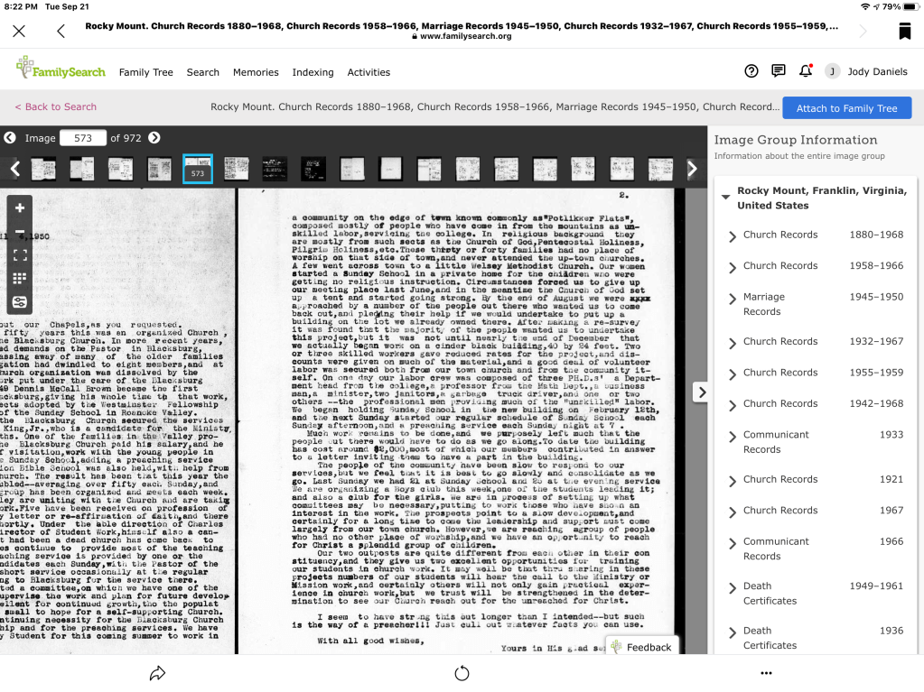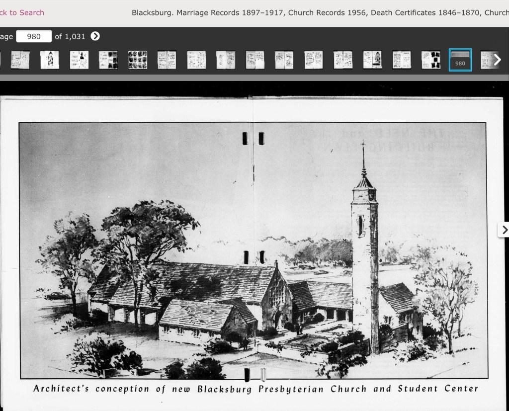 The documents about the early history for the Blacksburg Presbyterian Church can be found in Family Search, about image 5 to 104. Rich collection of early history of the church and Blacksburg. Needs to be transcribed. Images 104 , 276