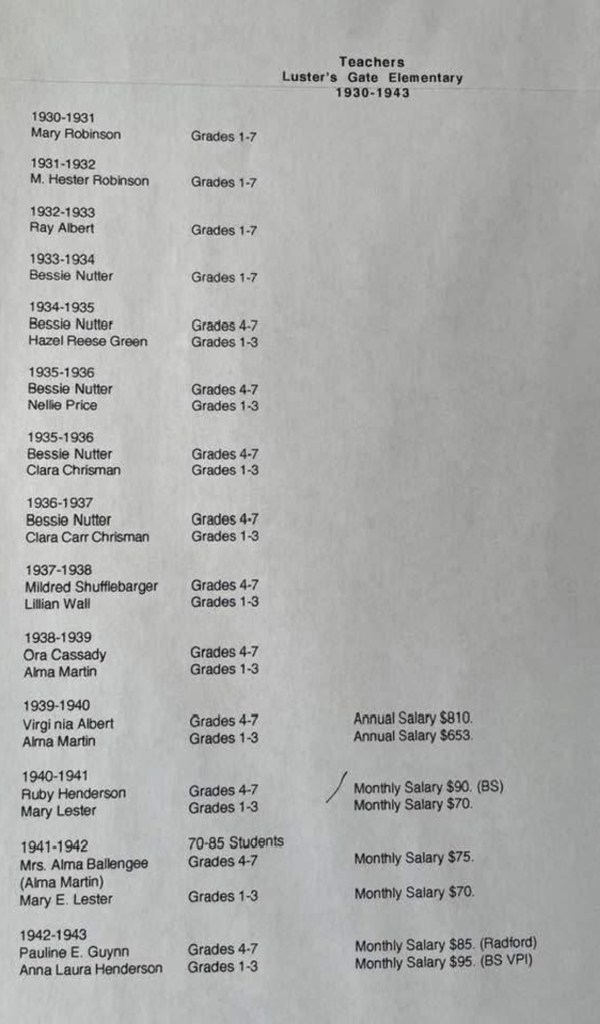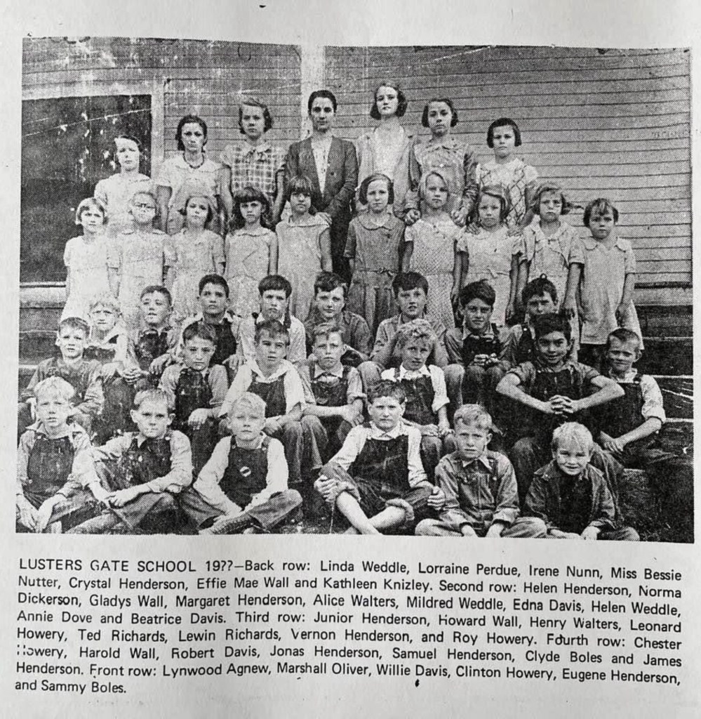 Luster’s Gate School was built in 1913 on land owned by J.K. Henderson. The community raised funds for materials and provided the labor to construct the building at a cost of $1,500.