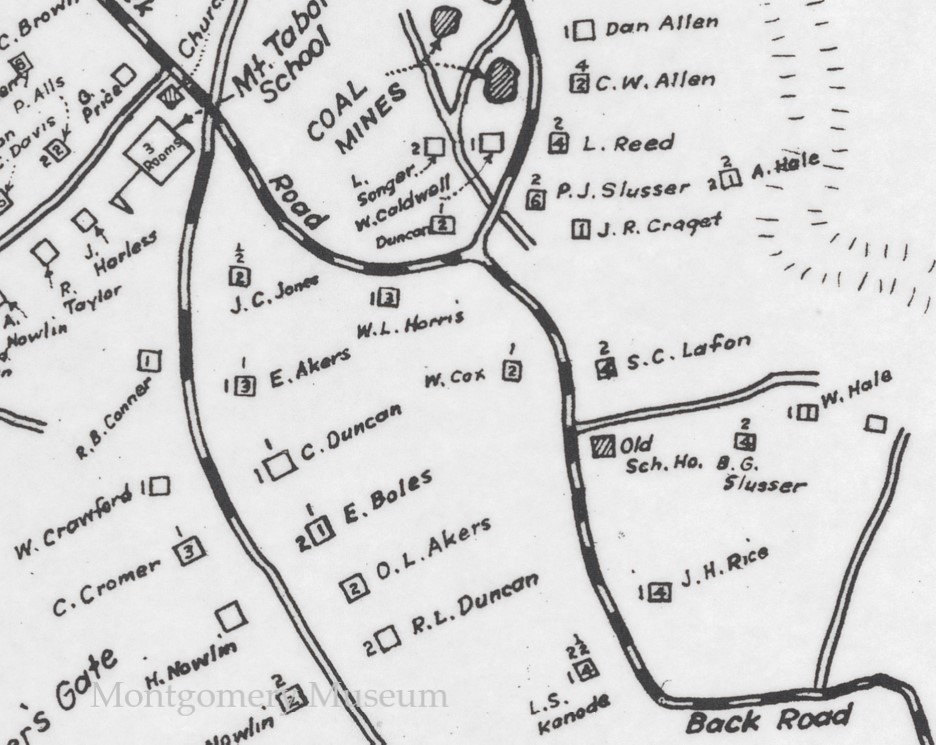 1940 School Census Map – Note “Old Sch. Ho.” next to B.G Slusser. This is another older school than Mt Tabor school