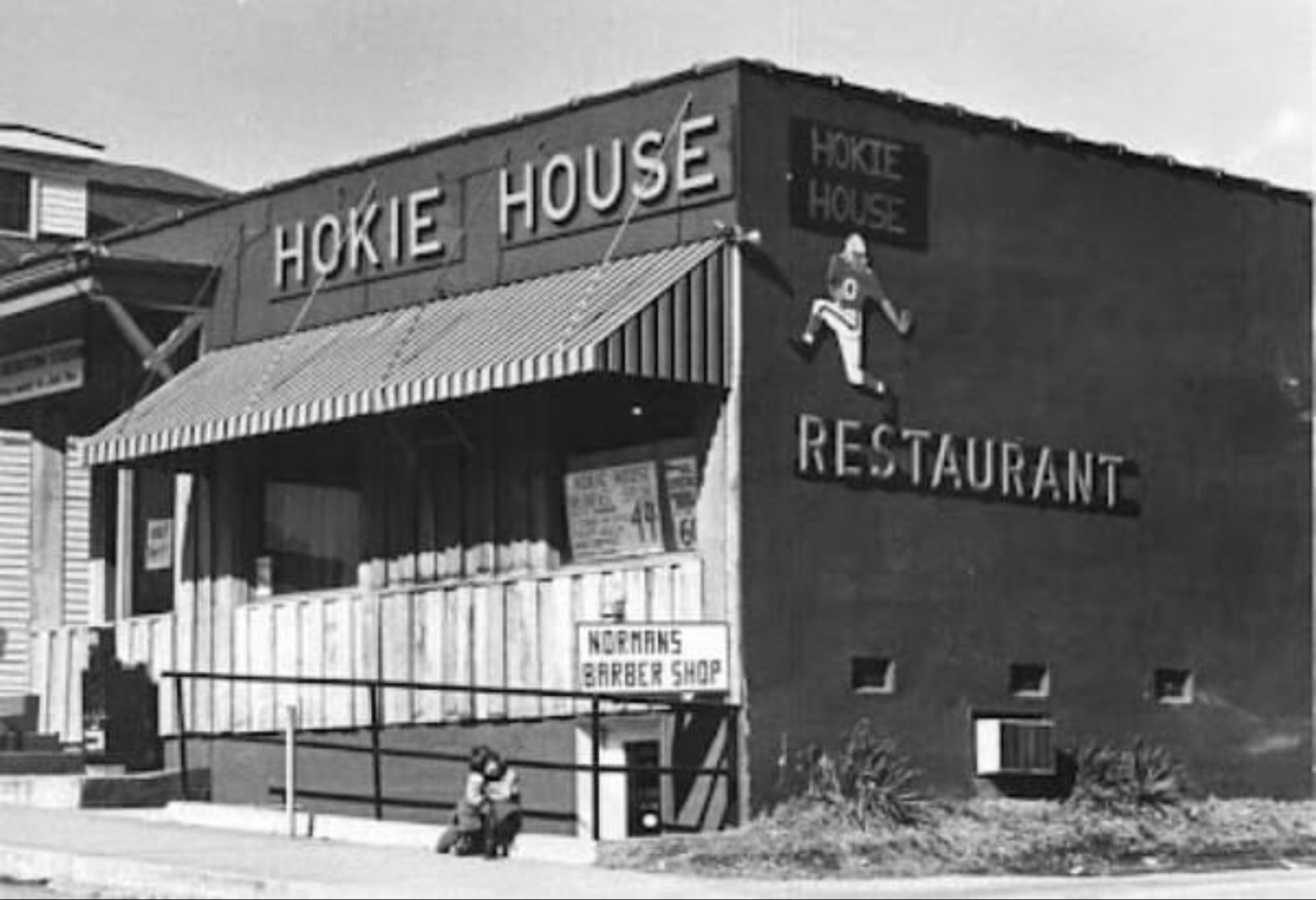 The Hokie House, an iconic bar at 322 North Main Street since the late 1960s, is known for its burgers and beer. It started as Mrs. Ryman’s lunch counter and later belonged to George Willard. In the basement, head barber Stewart Michael Ribble was popular with the VPI/VT Corps of Cadets, often drawing long lines of first-year cadets.