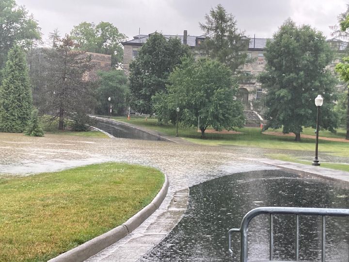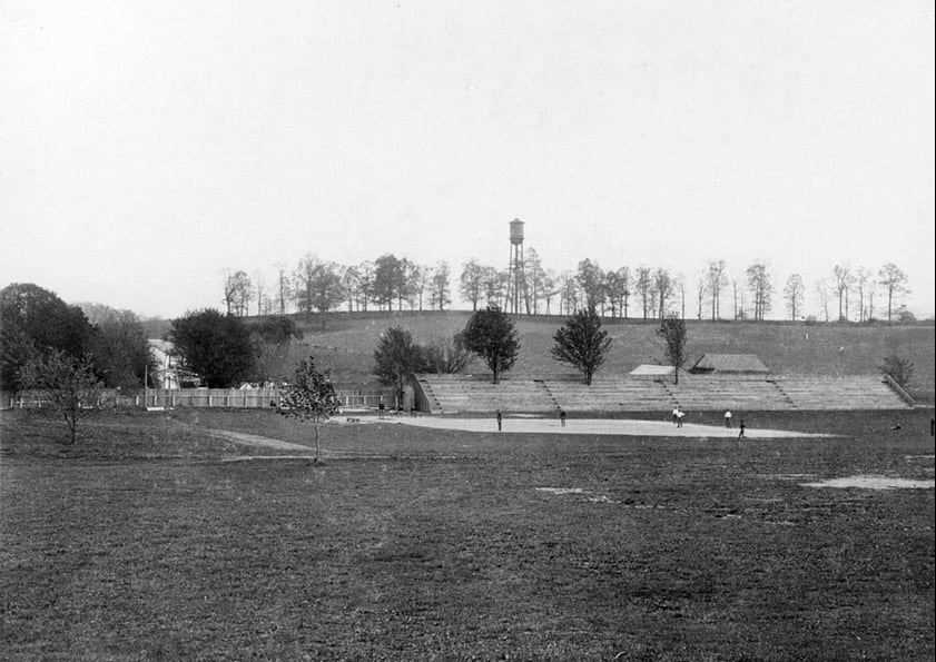 In 1891, the college bought the 1 acre Painters’ Spring (also known as the Spout and Palmer spring) which is still located on northeast Clay street. At one time this spring was associated with David Sydney Painter family and Colonel William H. Palmer’s summer home, Mountain View. The water was gravity fed in pipes, through town, to a 14,000 gallon wood tank, which was named “The Round House.” The reservoir was located behind the Old Shops (Preston Olin) building.