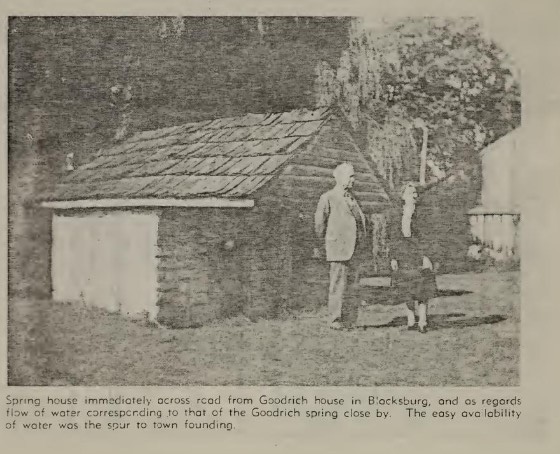 The original town spring was located about at the corner of Draper (Water Street) and Lee streets. Originally it was owned by the Goodrich family and protected by a log structure.